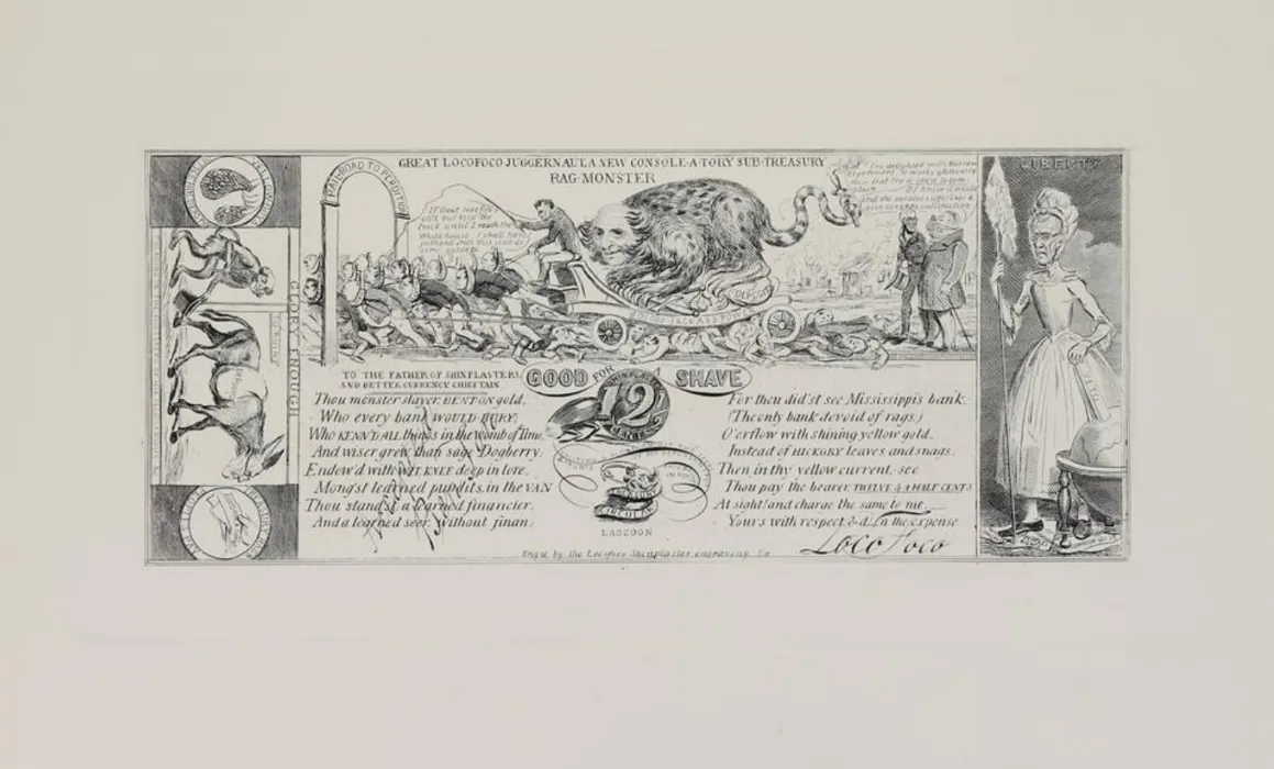 В каком-то смысле, легендарную банкноту Локофоко можно считать образцом политического сувенира. На купюре президент Джексон, его вице-президент и их союзники изображены как животные и символы хаоса. Вице-президент Мартин Ван Бюрен изображен как кот, сидящий на телеге, которую оттаскивают члены партии Локофоко. А сам президент Джексон — старая дева, топчущаяся на «голосах Конгресса, человеческих правах и здравом смысле».